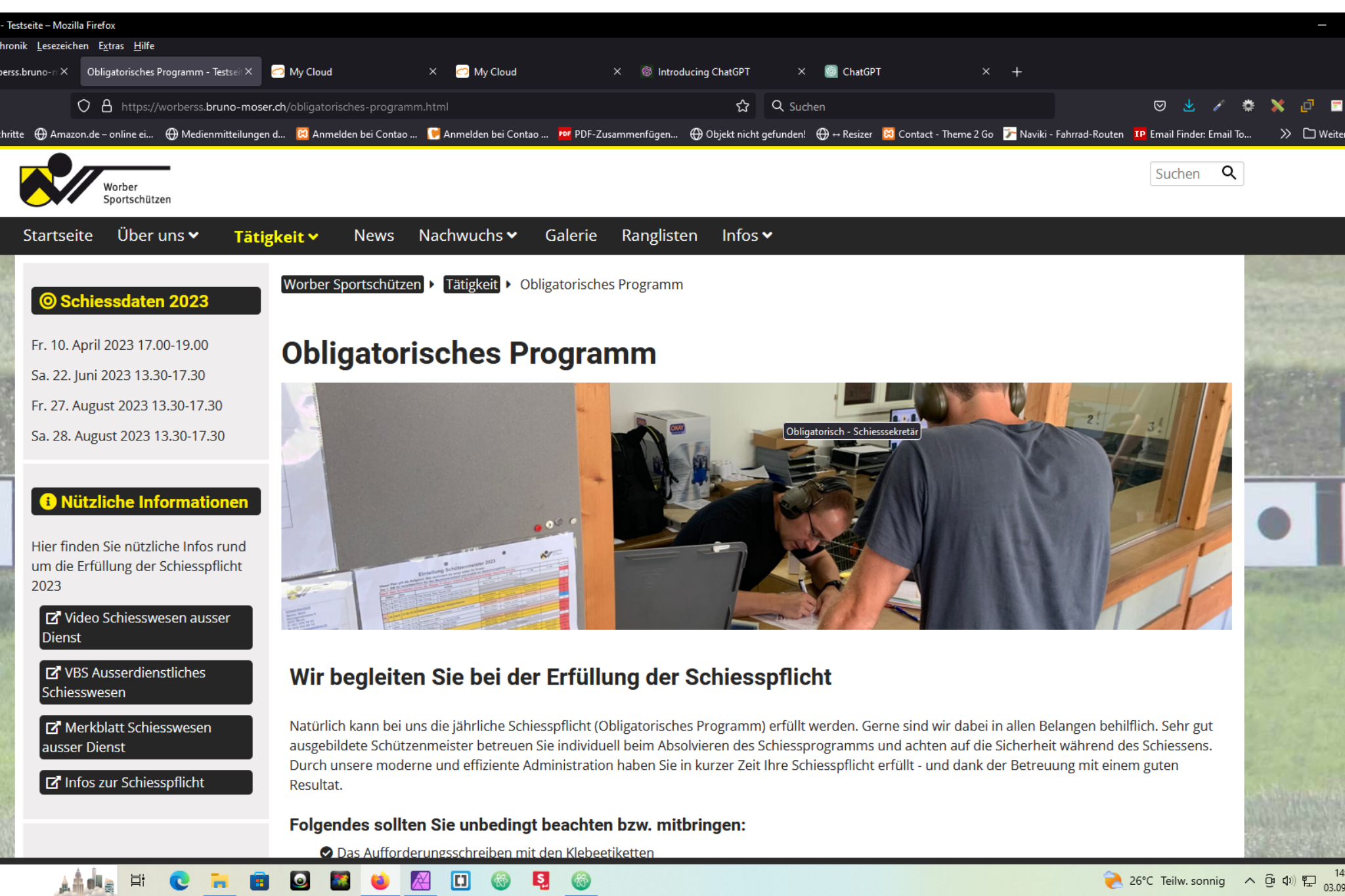 Mit dem neuen Webauftritt haben wir einen großen Schritt in die Zukunft gemacht! Nach 15 Jahren wurde die alte Website in Rente geschickt, und wir präsentieren stolz unsere brandneue, topmoderne Online-Präsenz. Mit einem frischen, zeitgemässen Design, reichhaltigen Informationen und einer benutzerfreundlichen Oberfläche möchten wir nicht nur unsere Mitglieder begeistern, sondern auch am Schiesssport interessierte dazu einladen, sich unserem Verein anzuschliessen.